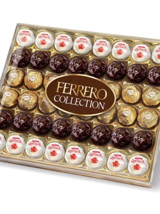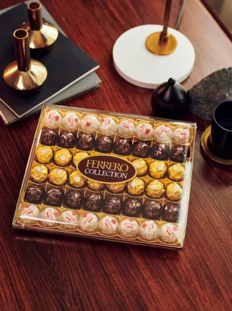 Ferrero Rocher offers a delicious taste experience due to its unique combination of layers and textures. A delicious crunchy, gently roasted hazelnut and velvety hazelnut filling wrapped in a light wafer shell and coated in creamy milk chocolate and finely chopped hazelnut pieces. This collection includes the unique Ferrero Rocher, the velvety coconut Raffaello and seductively dark Rondnoir. The Ferrero Raffaello is a harmonious blend of coconut from the Pacific Islands and white almonds from California. The Ferrero Rondnoir is a delicious combination of fine wafer and rich creamy cocoa filling with a dark chocolate heart. Perfect for sharing with your loved ones, making any occasion special.