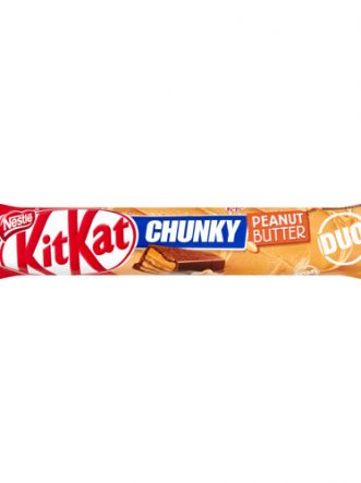 A delicious chocolate bar, comprising a crispy wafer biscuit covered with a tasty layer of peanut butter Kit Kat flavoured chocolate