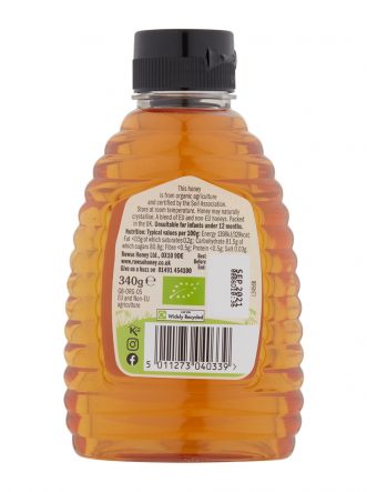 Rowse Organic Honey is from organic agriculture and certified by the Soil Association. It has a medium amber colour and a fruity flavour, with fresh back notes. Great on granola, pancakes, waffles and fruit.