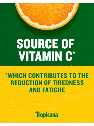 – Just one 150ml serving of delicious Tropicana Orange Juice provides 1 of your 5 daily portions of fruit and vegetables, up to 2/3rds of your recommended daily Vitamin C intake, and contains Vitamin B9