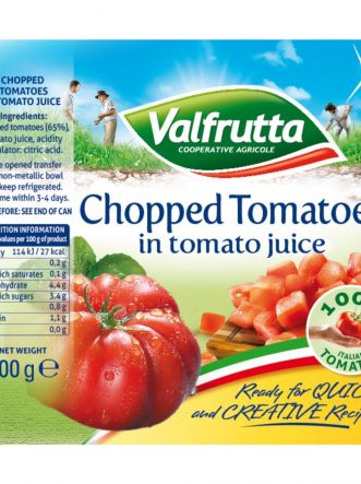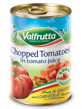 Fragrant and tasty, with a rich red hue, Valfrutta Chopped Tomatoes in tomato juice bring the natural goodness and freshness of tomatoes picked and packed the same day for a vivid and inviting taste experience that makes every dish special! The finest round tomatoes have been peeled, de-seeded and lovingly carved into large, fleshy pieces to preserve the quality, consistency and intense flavour of Italy.