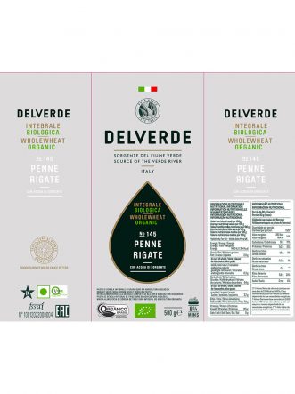 DelverdeĀ Wholewheat Organic Penne is pasta with wholemeal durum wheat semolina from 100% Italian organic farming. Bronze drawing and slow drying at low temperatures, all the nutritional richness of the grain of wheat, including fibre, vitamins and minerals, are maintained with the safety of organic without sacrificing the delicious taste. Penne has excellent cooking yield and offers the perfect consistency and bite. Ideal for light sauces served with fish or vegetables.